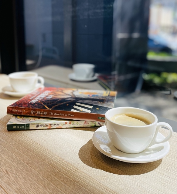 一樣特意選坐陽光灑落的靠窗座位、一樣美味咖啡佐隨手翻翻書,樂音悠揚下的舒適空間,許自己一個心情沈靜而美好的午後好時光!
